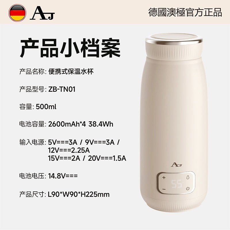 德国AJ恒温便捷式调奶器烧水壶婴儿外出旅游智能保温无线水杯冲奶
