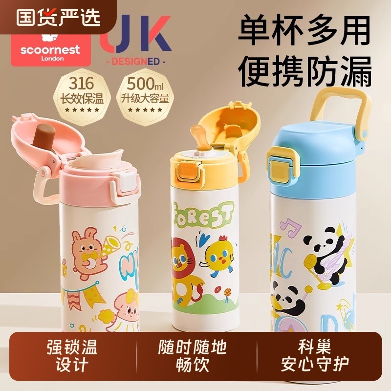 科巢儿童保温杯水杯宝宝幼儿园小学生吸管杯上学专用水壶男女新款