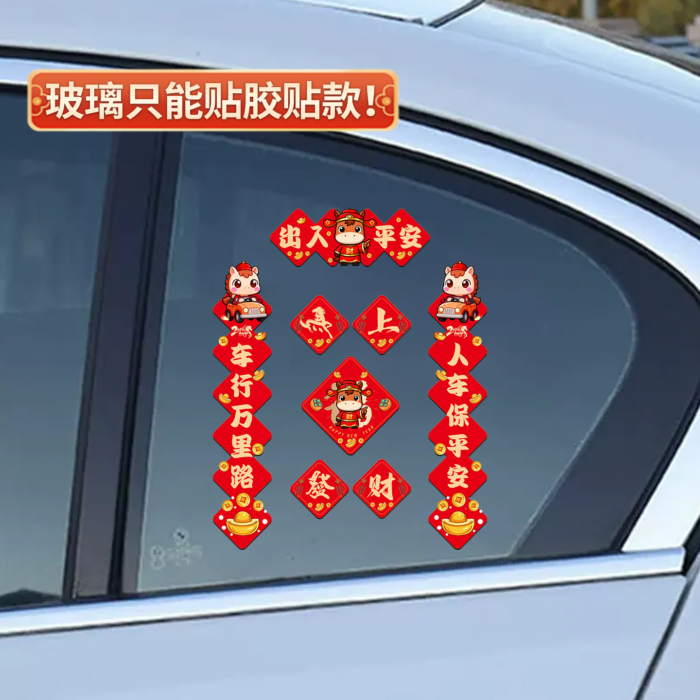 马年磁吸对联车用贴新年2026新款春节过年家用门贴春联汽车装饰贴