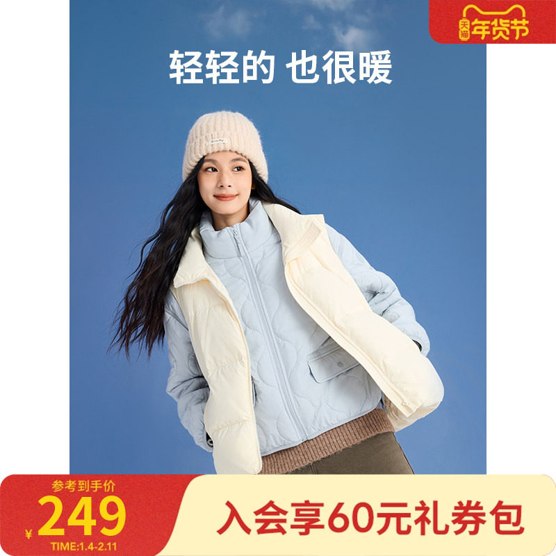 骆驼女装羽绒马甲2025秋冬新款白色轻薄短款外穿保暖背心男女外套