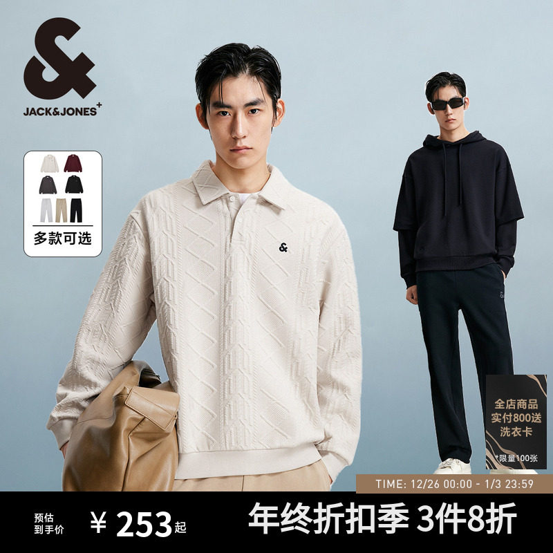 杰克琼斯肌理感POLO领卫衣纯棉直筒卫裤