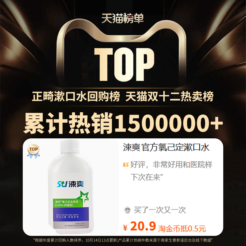 涑爽漱口水氯己定含漱液抑菌牙科正畸专用口腔口臭种植牙簌口水