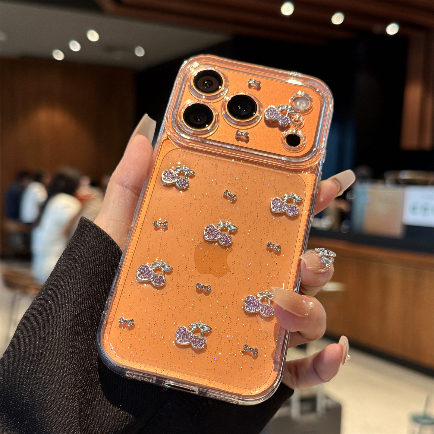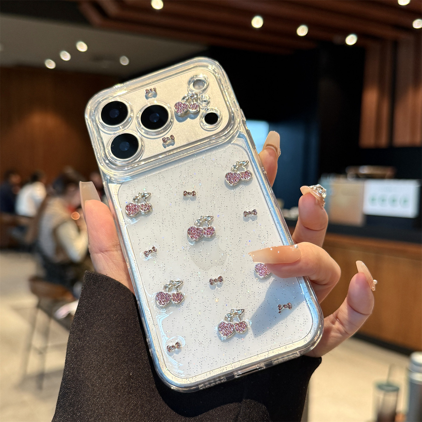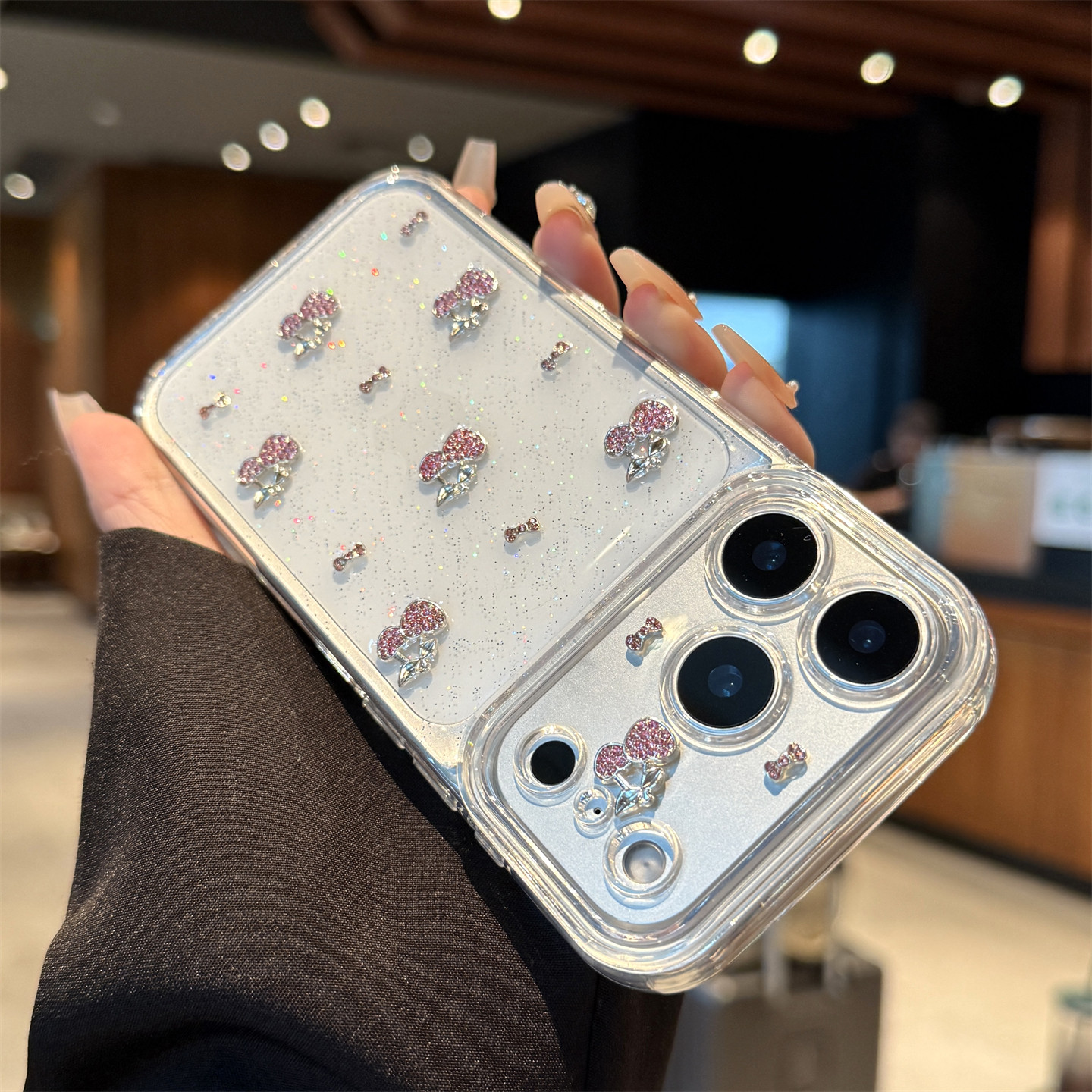 适用苹果17promax手机壳新款iphone17粉色樱桃蝴蝶结17pro高级感16闪粉15全包防摔pm透明14硅胶13小众12女款