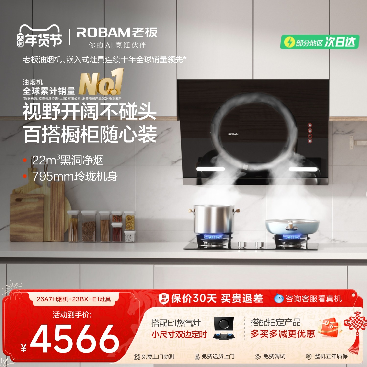[黑洞MAX]老板26A7H侧吸家用吸油烟机燃气灶套装官方旗舰店