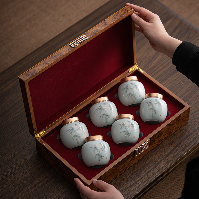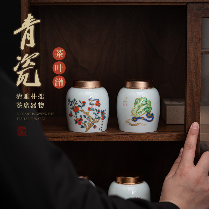 青瓷茶叶罐 家用陶瓷小号合金螺旋密封罐储物罐茶仓便携收纳罐子