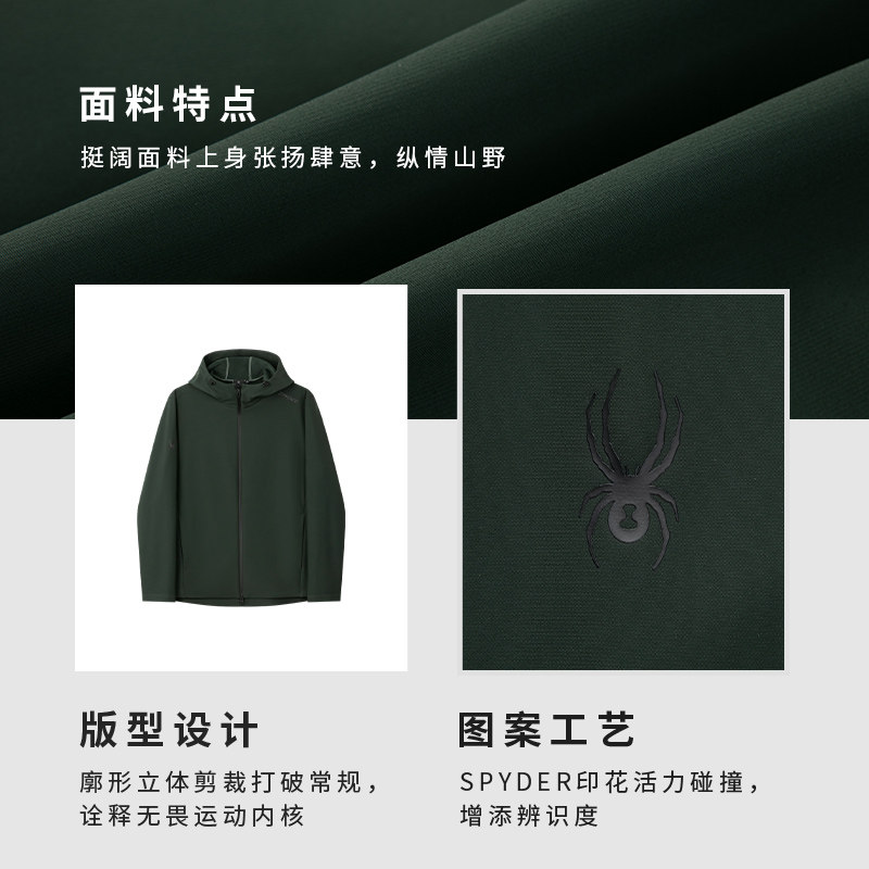 SPYDER蜘蛛秋冬男子MOUNTAIN LIFE透气连帽长袖夹克外套24MF105M