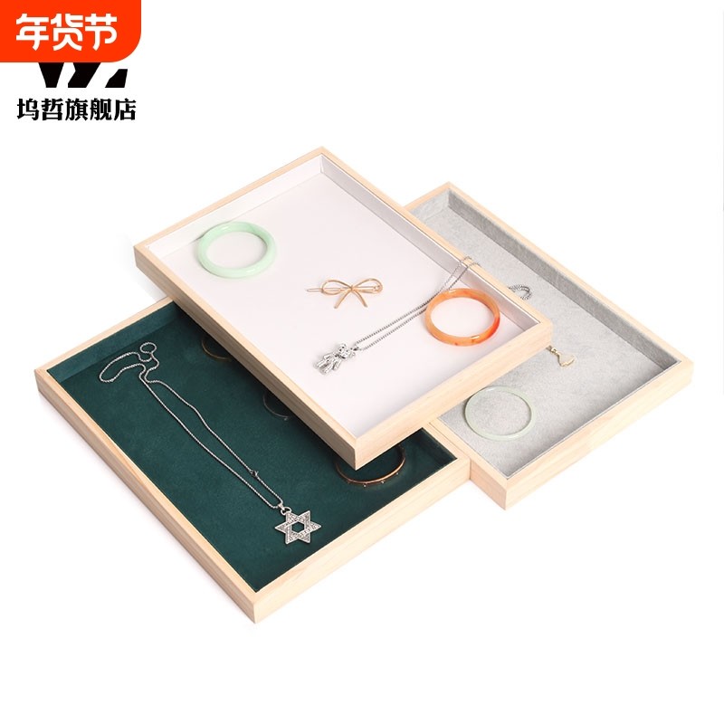实木原色首饰展示盘项链手镯手表饰品珠宝柜台看货盘松木陈列托架