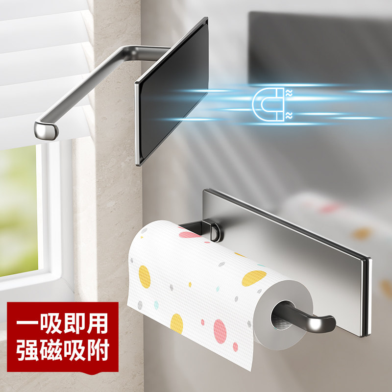 磁吸纸巾架免打孔冰箱用纸置物卷纸架保鲜膜套吸油纸磁铁收纳挂架