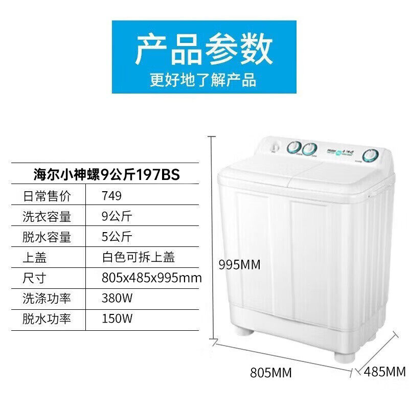 海尔小神螺9/11/13kg半自动洗衣机双缸197bs出租老式节能家用118S