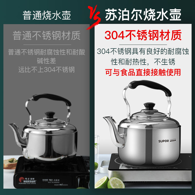 苏泊尔烧水壶304不锈钢加厚大容量家用煤气燃气电磁炉鸣笛热水壶