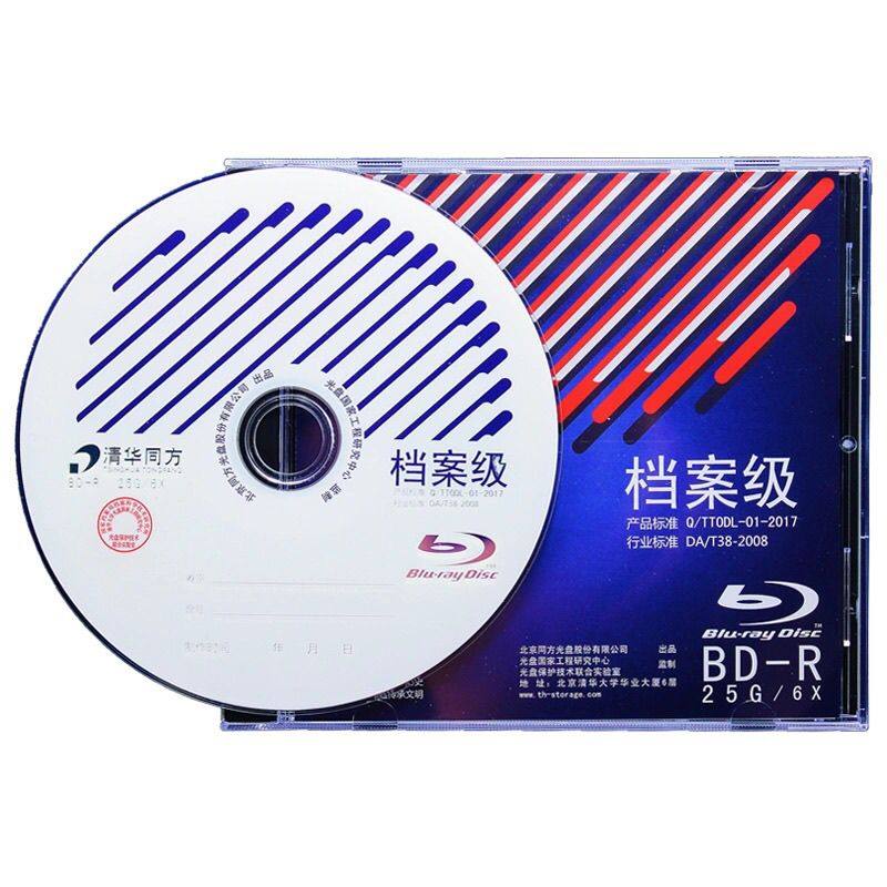 档案级DVD-R刻录盘4.7G 25G50G可打印档案盘电脑蓝光光盘清华同方