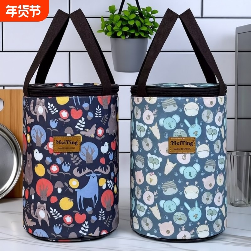 加厚铝箔大容量防水圆筒手提饭盒袋闷烧杯饭盒桶保温包圆形便当包
