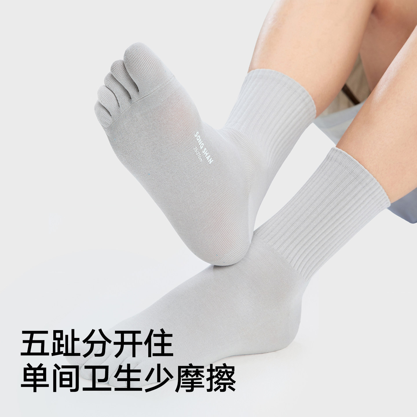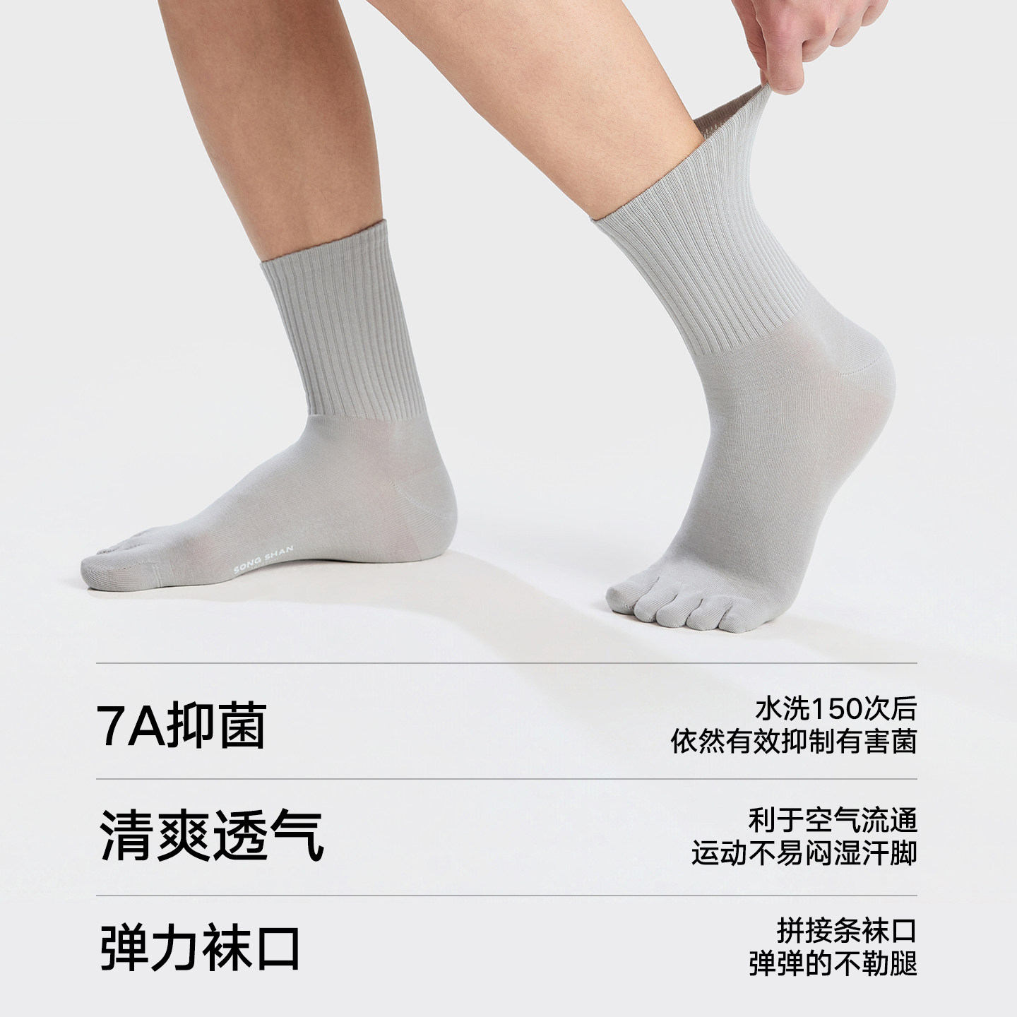 松山棉店净色百搭男士女士五趾袜7A抗菌弹力中筒袜棉袜春夏新款