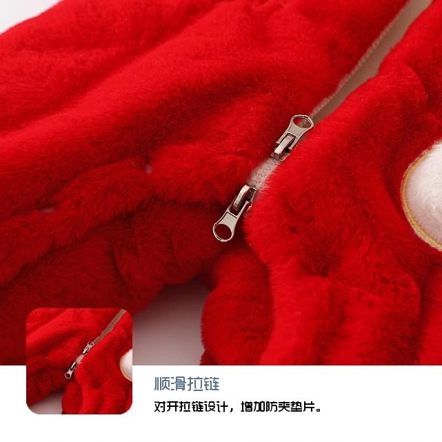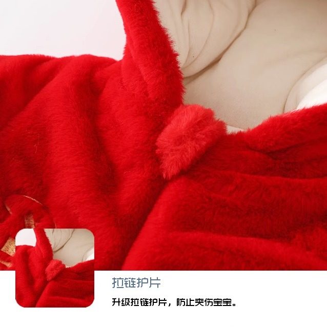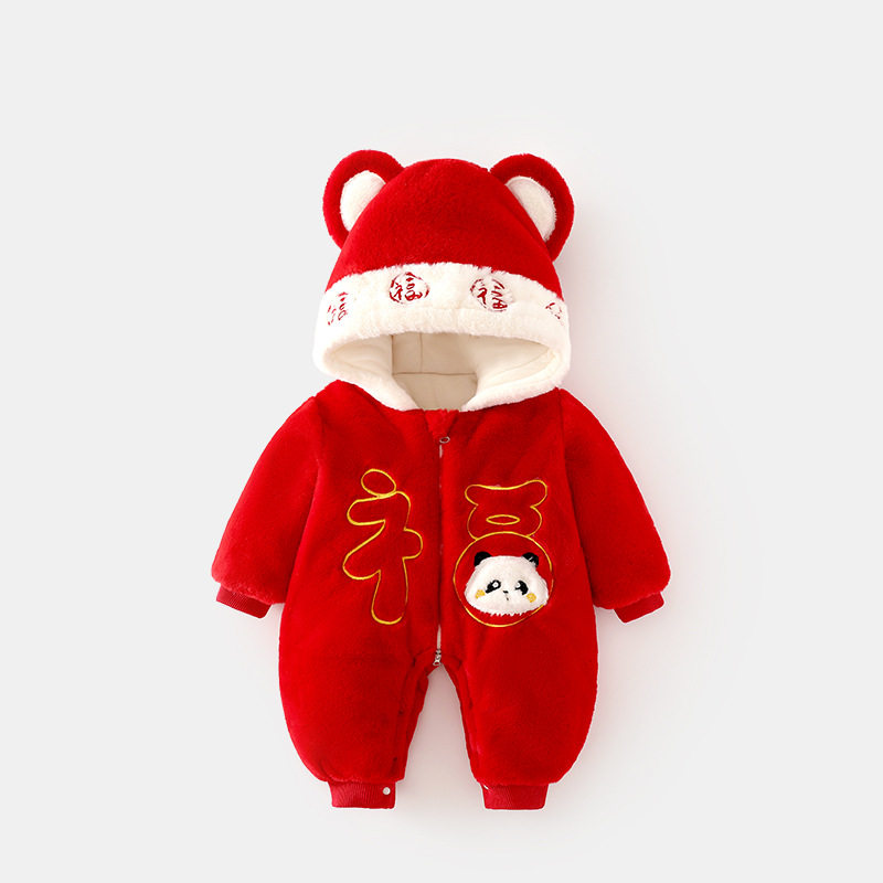 婧麒新生婴儿红色过年喜庆衣服秋冬款连体衣冬季宝宝满月宴拜年服