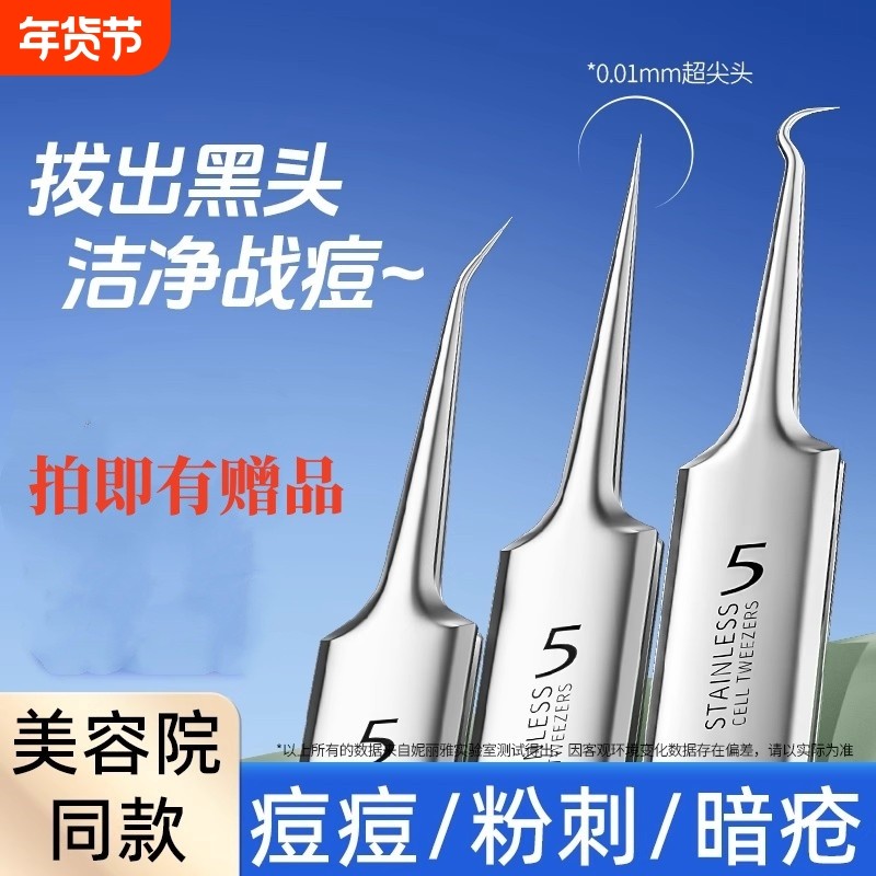 超细5号细胞夹去黑头镊子高精密粉刺针套装美容院专用挤痘痘工具