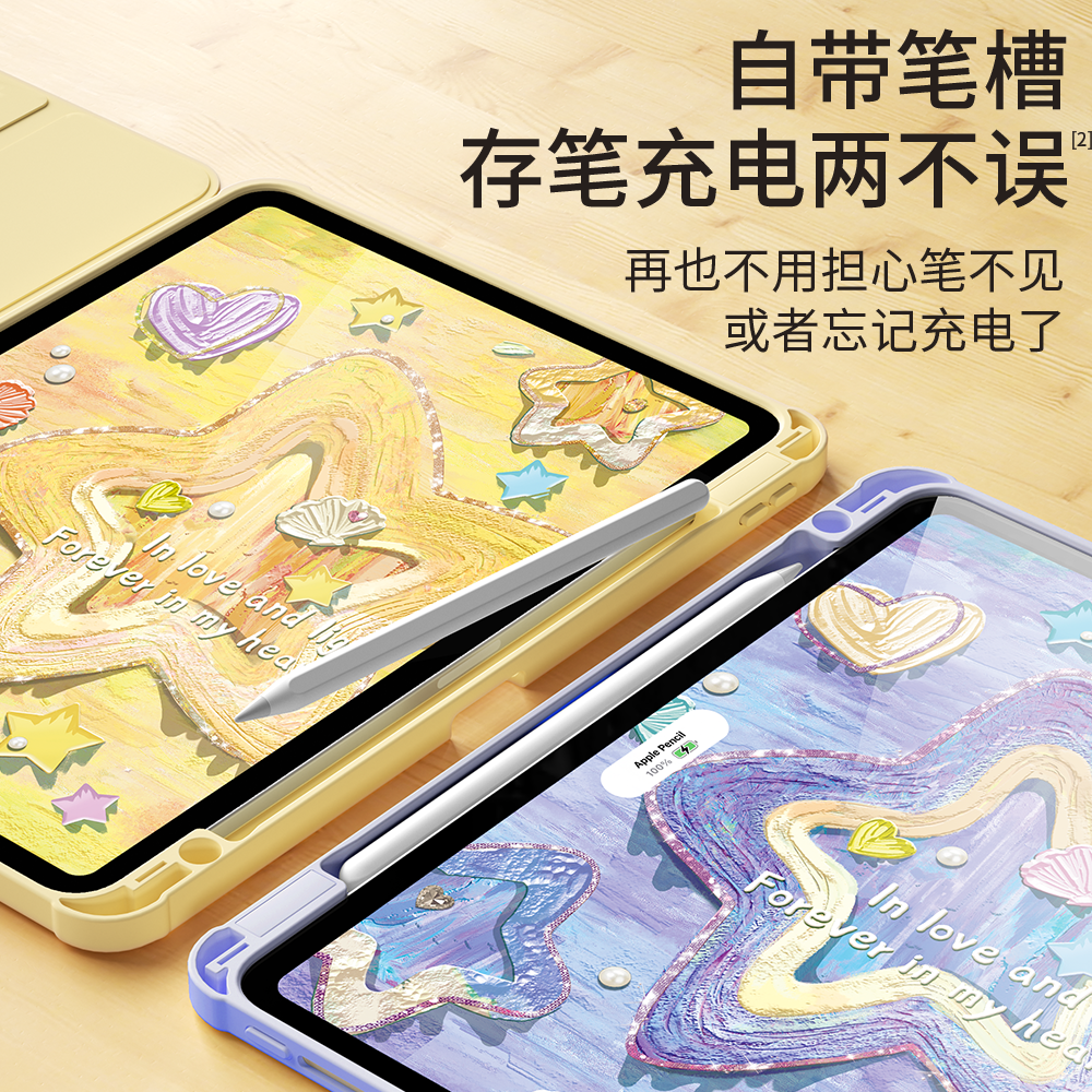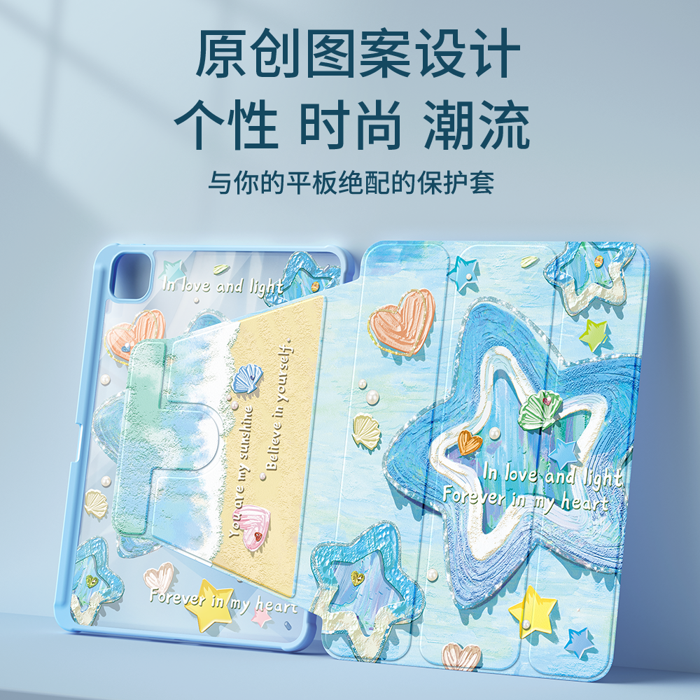 适用ipad11保护套2025新款air7/6平板壳第10/9代带笔槽a16全包mini4/5防摔iPadPro11亚克力2021星星海滩