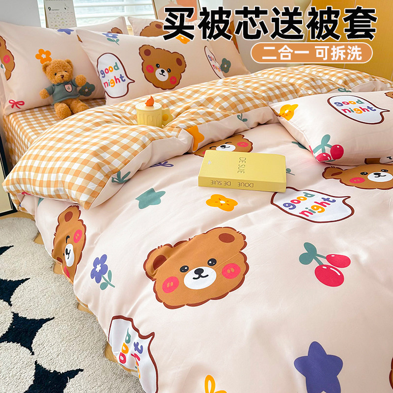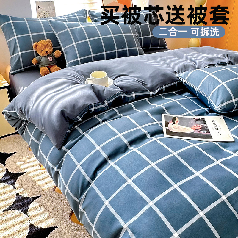 被芯带被套拉链可拆洗被子冬被非全棉纯棉两件套全套一整套装棉被