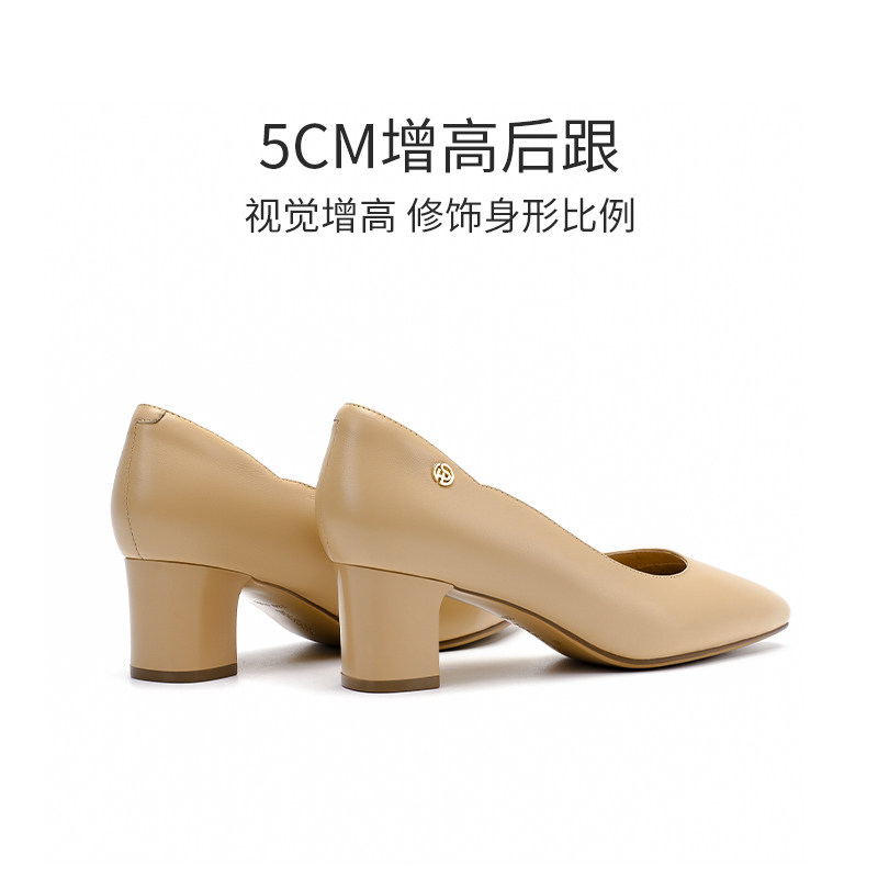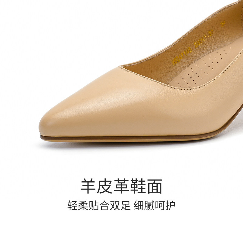 【明星同款|静音系列】千百度练习曲裸色高跟鞋真皮通勤法式单鞋