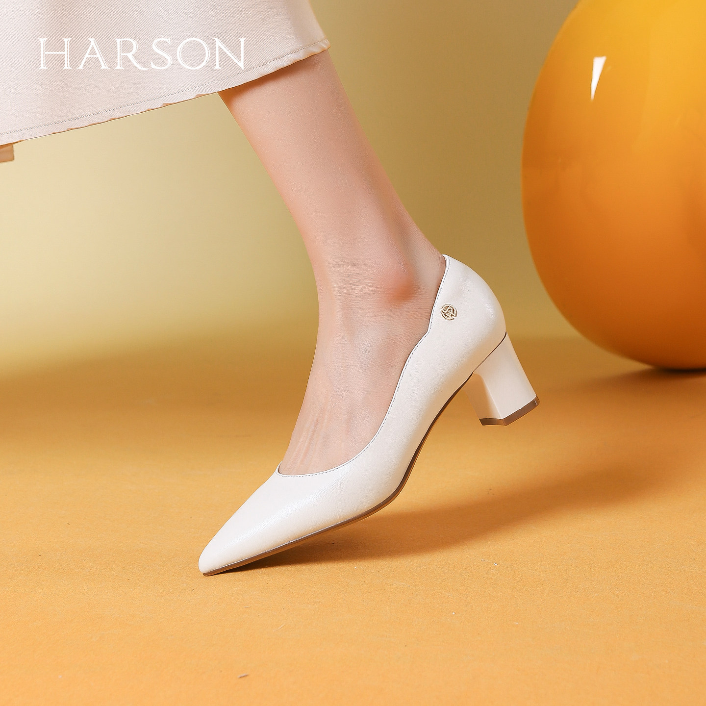 哈森纯色不累脚软底高跟单鞋女2026新款通勤粗跟工作鞋HS267118