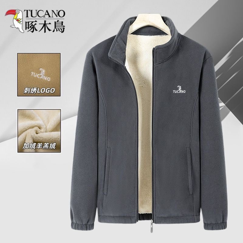 啄木鸟冬季夹克外套立领男装上衣摇粒绒加绒厚宽松运动中老年爸爸