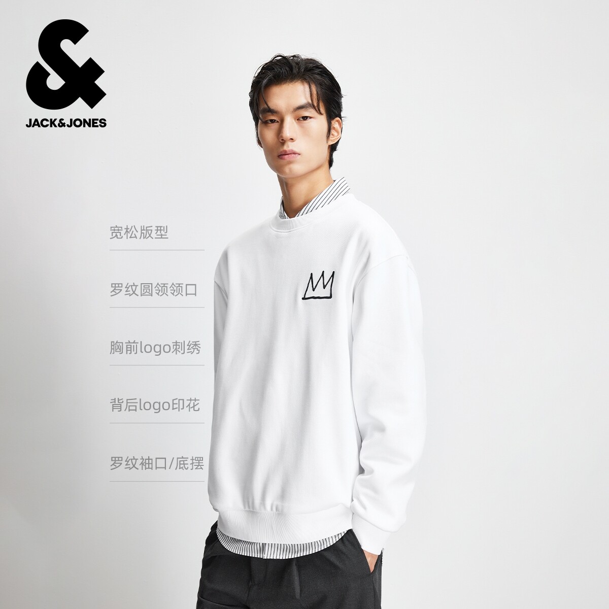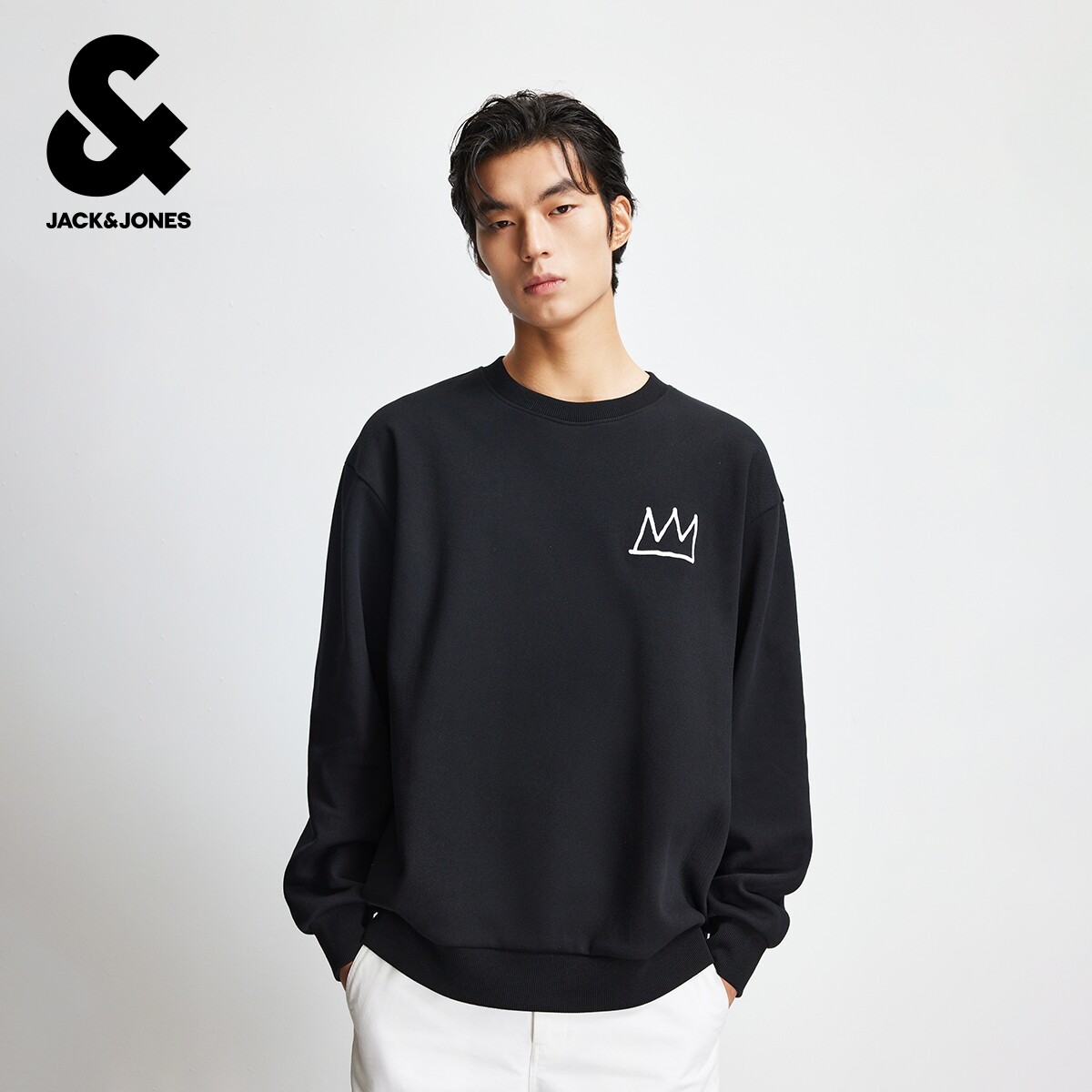 杰克琼斯奥特莱斯BSQ联名男装卫衣冬季新款时尚刺绣圆领宽松上衣