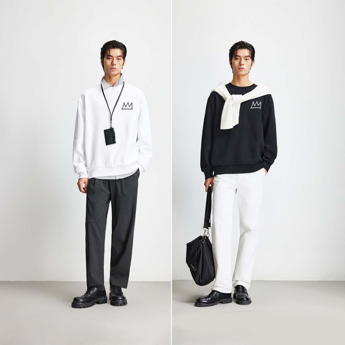 宽松版型,罗纹圆领领口,胸前logo刺绣
