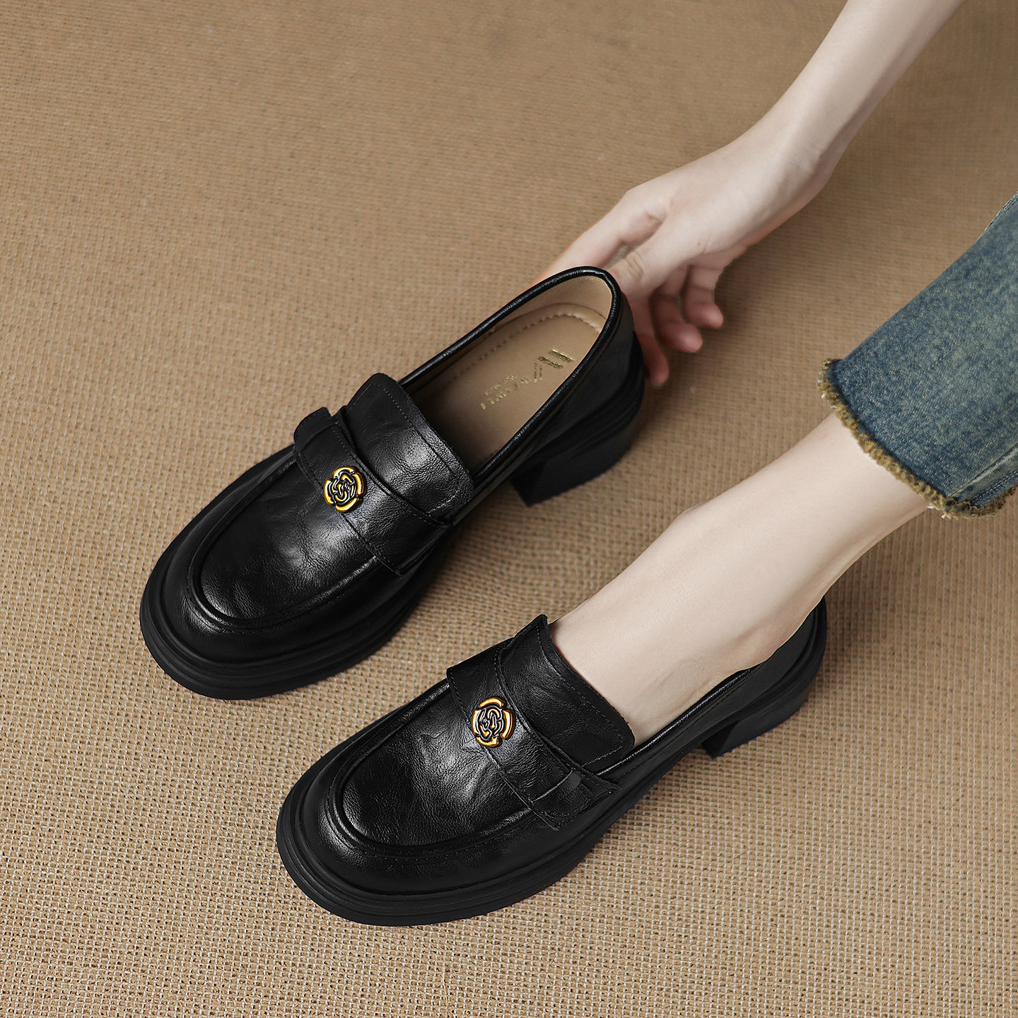真皮英伦风小皮鞋女鞋子2025春秋新款潮乐福鞋黑色平底单鞋豆豆鞋