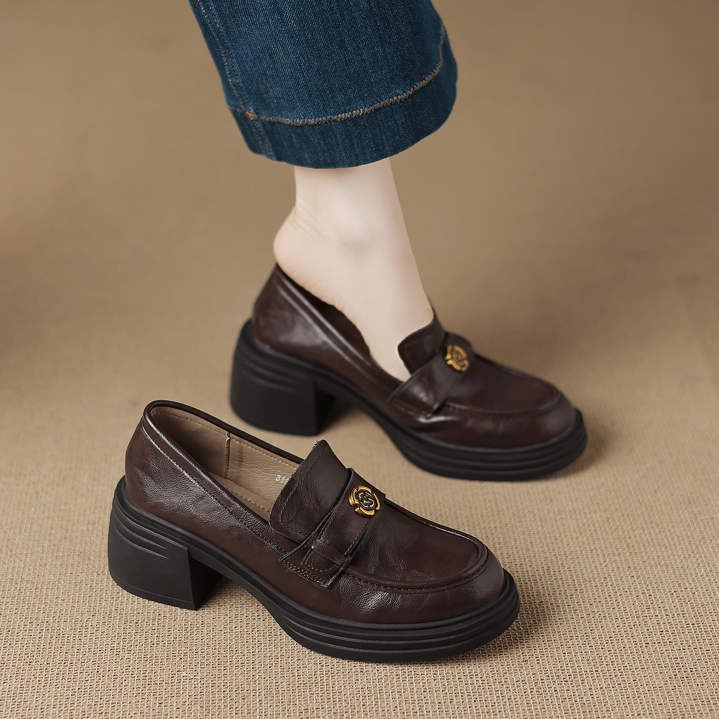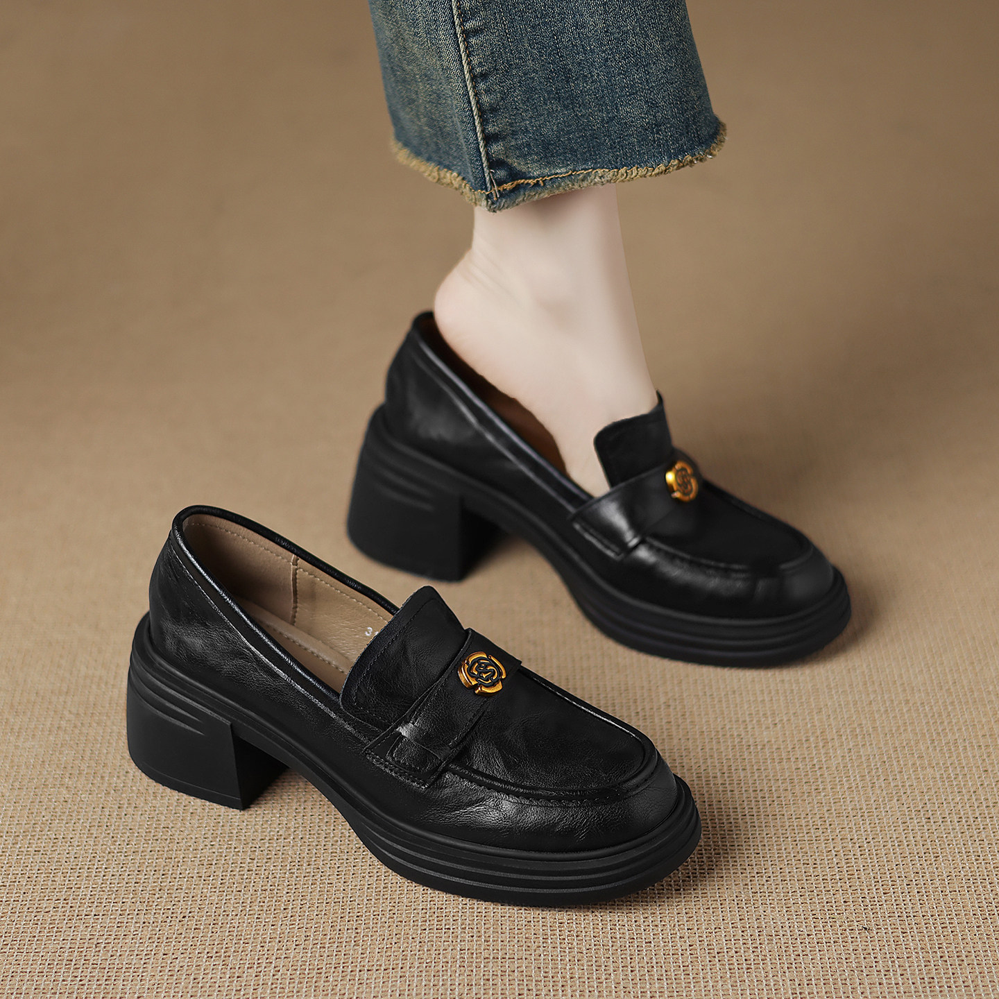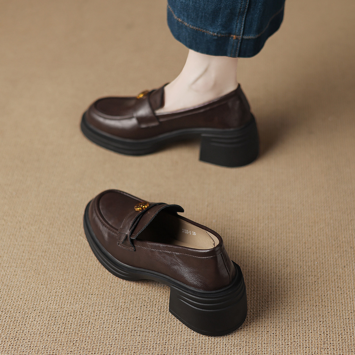 巨好看高跟小皮鞋女2025秋新款爆款厚底一脚蹬单鞋女不累脚乐福鞋