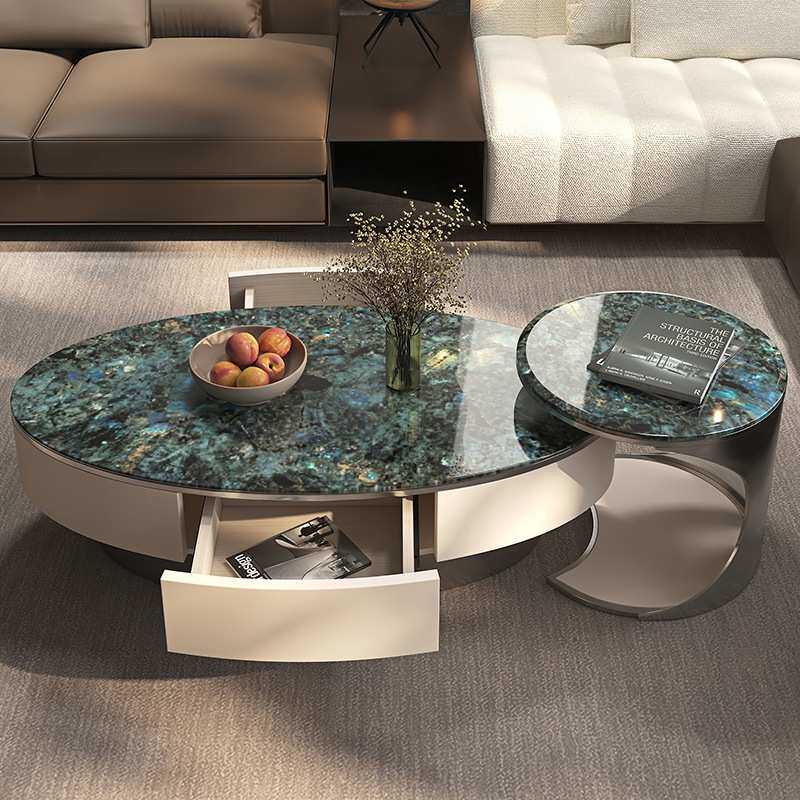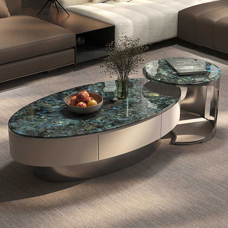 天然大理石茶几客厅家用意式轻奢椭圆形大小组合茶几客厅茶几新款