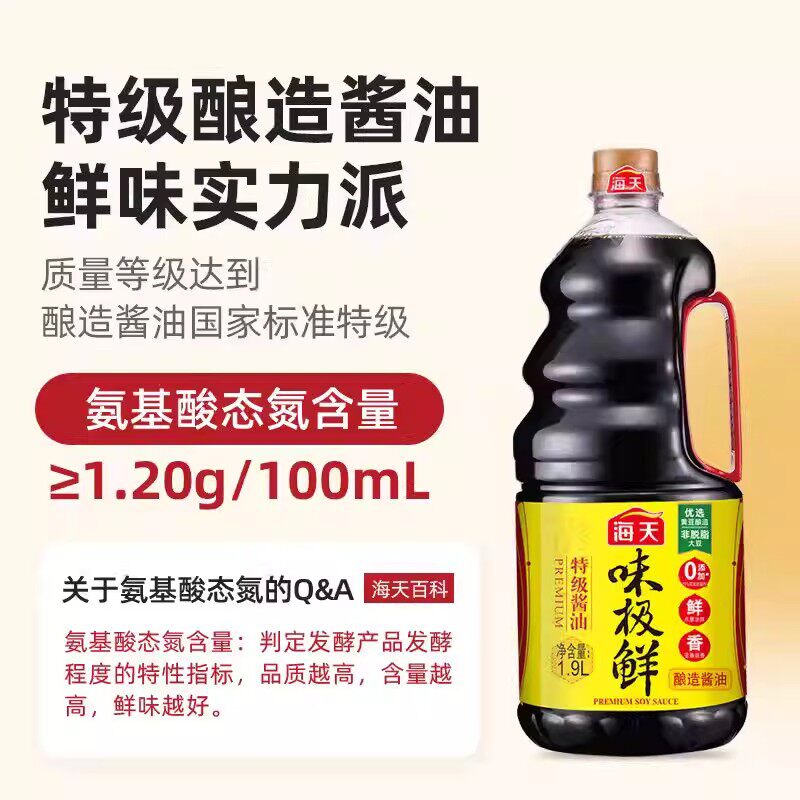 海天酱油味极鲜1.9l酱油特级生抽酱油黄豆酿造蒸鱼豉油煲仔饭酱汁