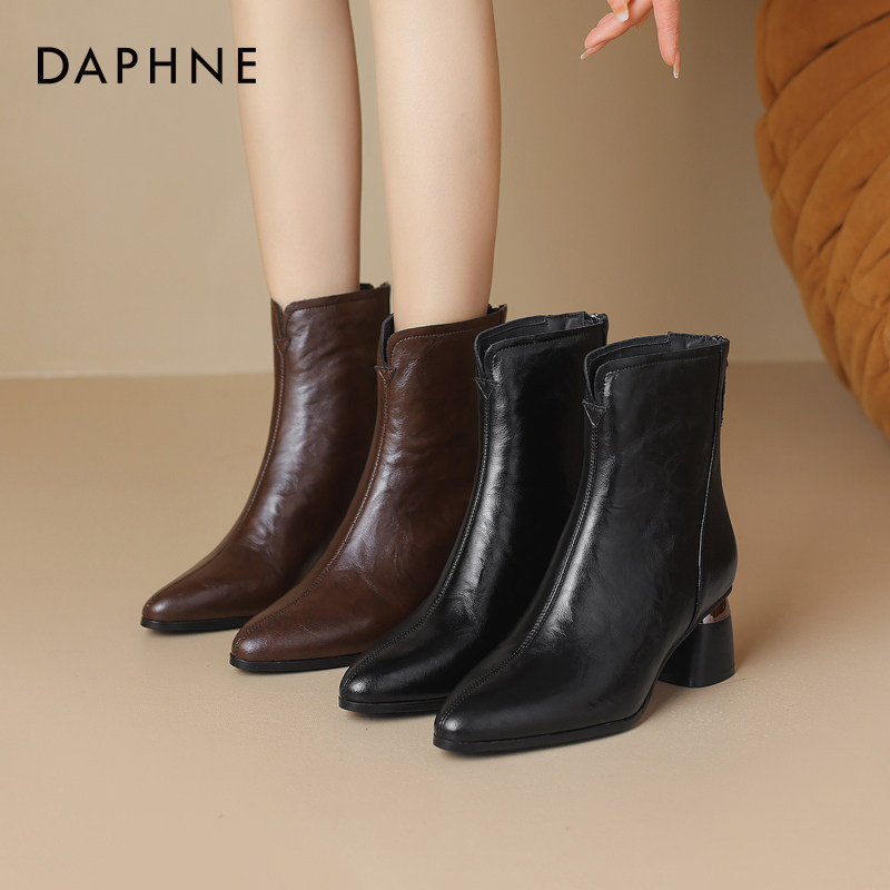 达芙妮短靴女2026新款尖头妈妈靴子春季棕色高跟鞋秋冬皮鞋马丁靴