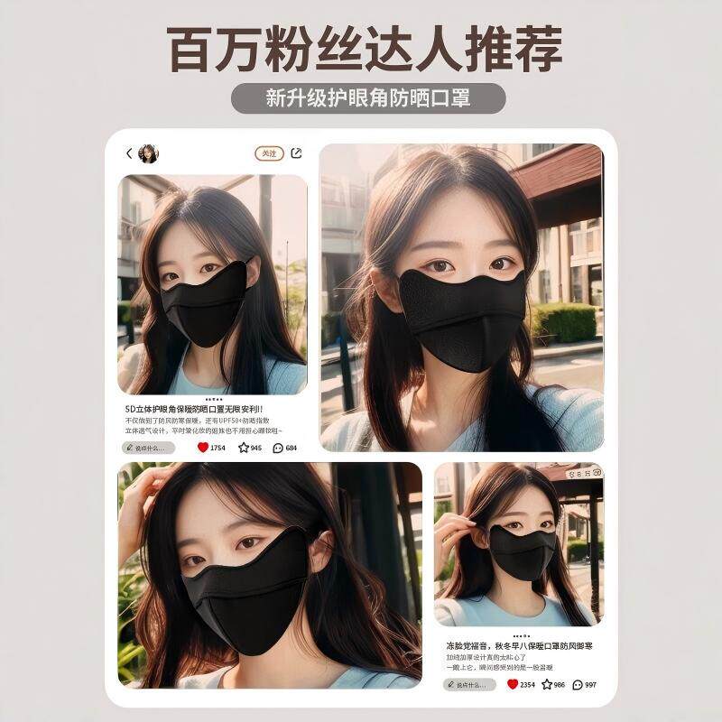 无痕凉感防晒口罩女防紫外线遮阳医美轻薄透气骑行冰防晒面罩