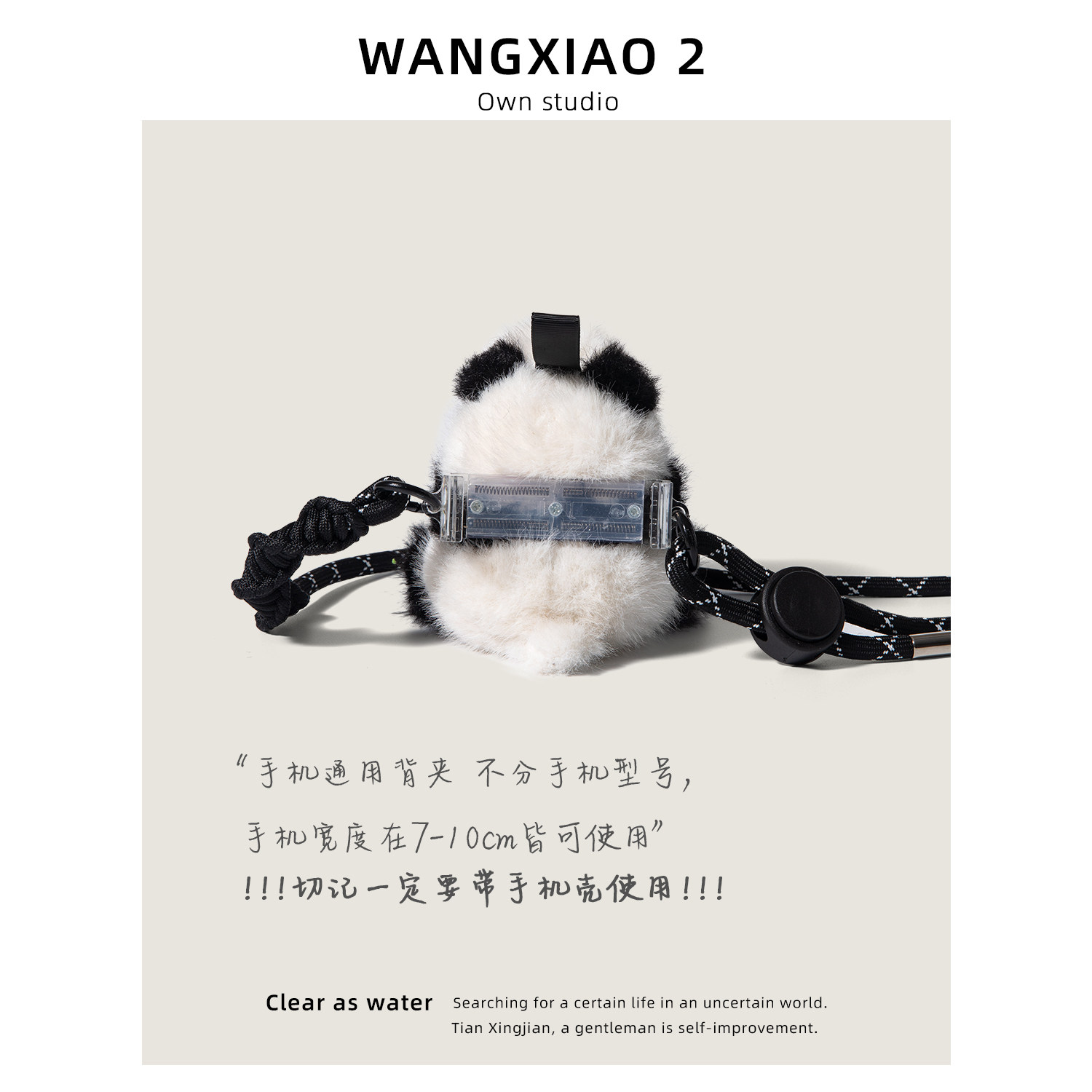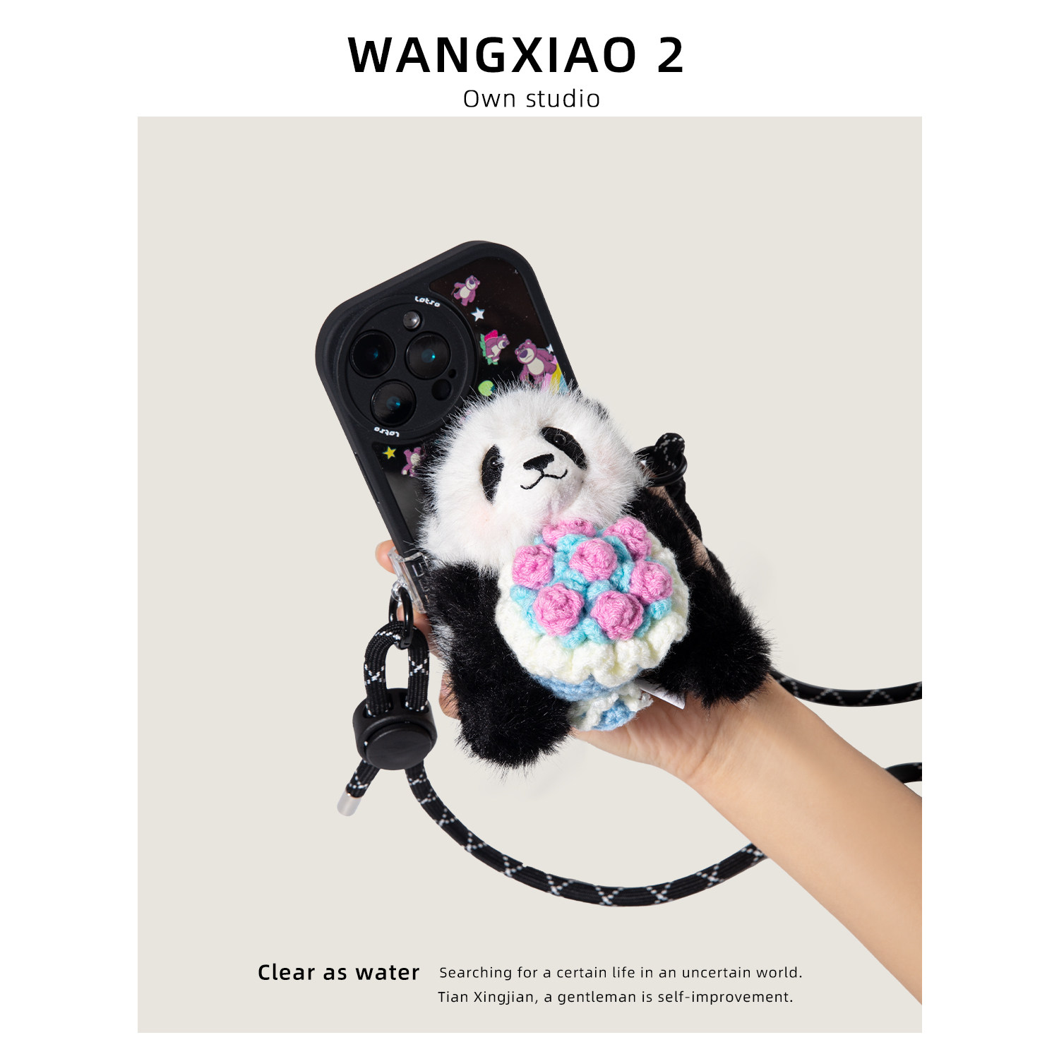 WANGXIAO 2可爱手捧花熊猫花花手机背夹斜跨毛绒公仔手机链挂件