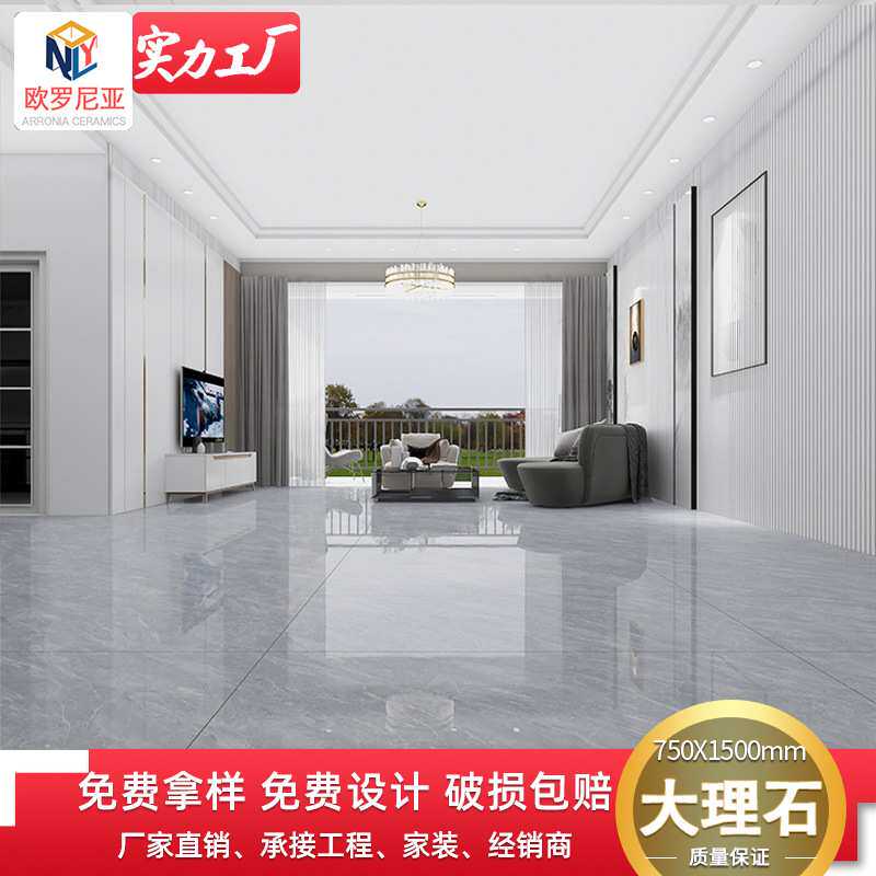 轻奢风地板砖 佛山瓷砖750x1500通体大理石客厅餐厅别墅通铺地砖