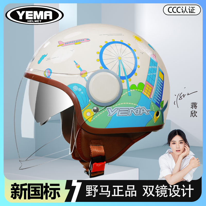 野马3C认证新国标电动摩托车头盔夏季防晒双镜男女半盔四季安全帽
