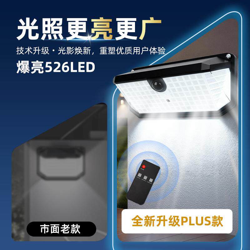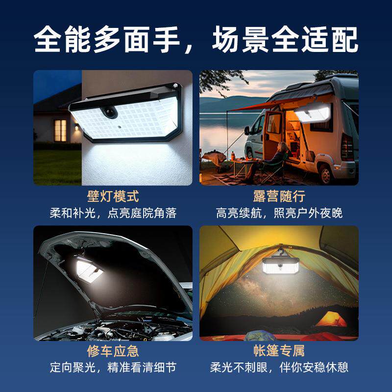 太阳能露营灯户外防水庭院壁灯智能遥控感应526LED室外挂灯照明灯