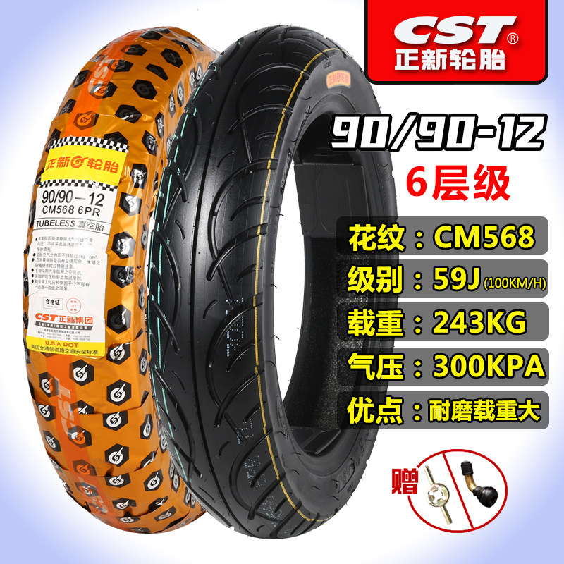 正新轮胎90/90-12电动车摩托车轮胎18.5X3.5耐磨真空胎外胎16X3.5