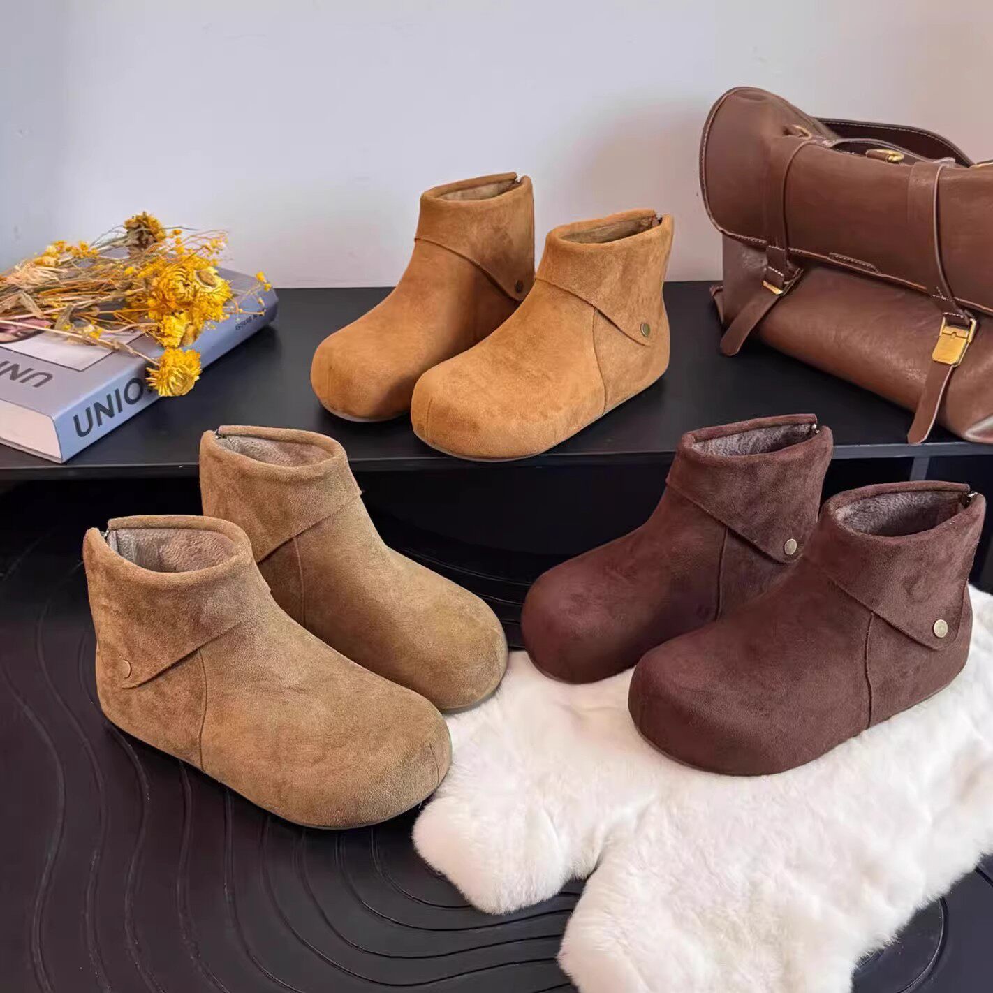 热风女鞋男鞋雪地靴加绒保暖加厚棉鞋短靴厚底毛毛鞋博肯鞋拖鞋