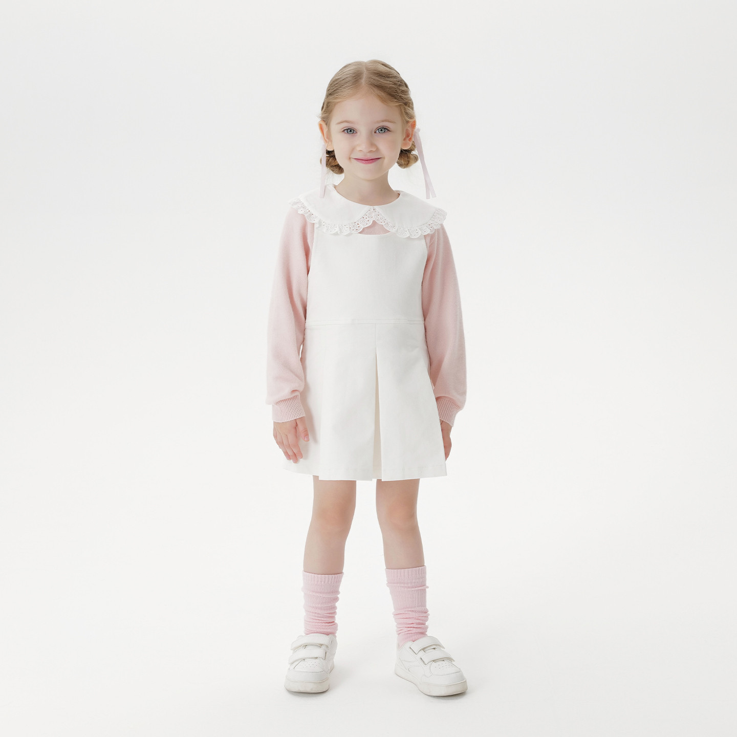 baleno junior春秋女童圆领长袖连衣裙撞色可爱时尚百搭纱纱裙子