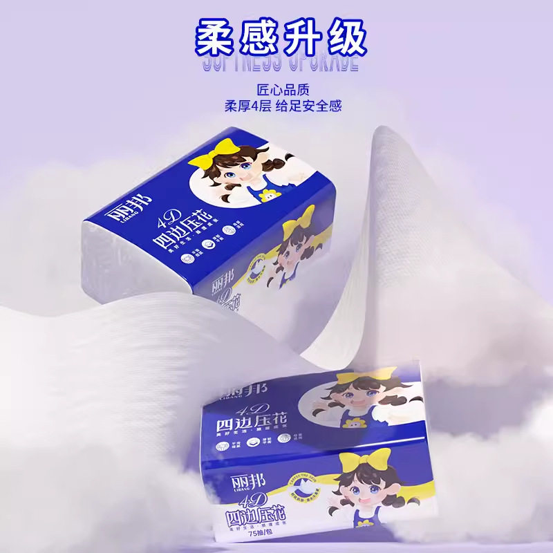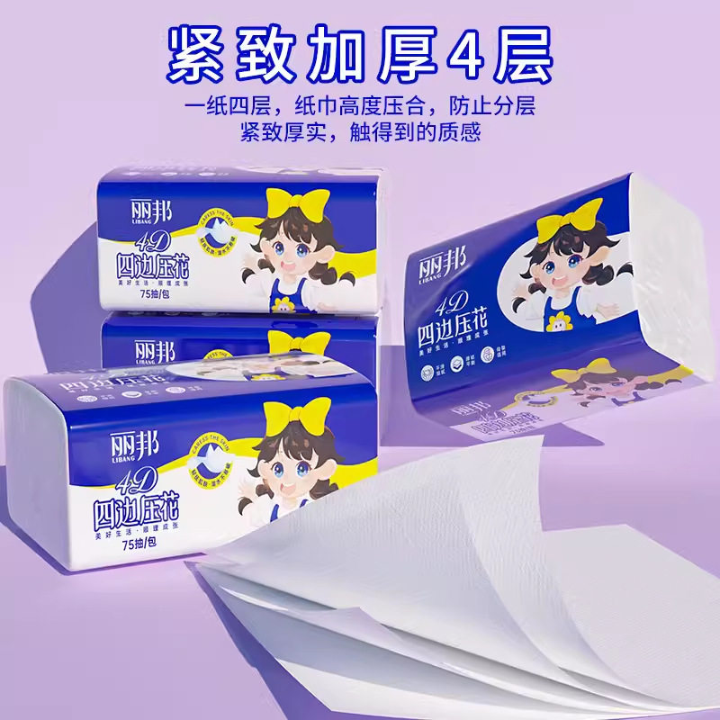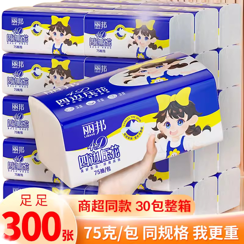 丽邦4层抽纸300张6包/10包/30包实惠装家庭用母婴可用宝宝纸巾