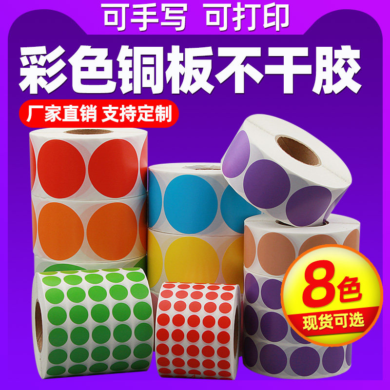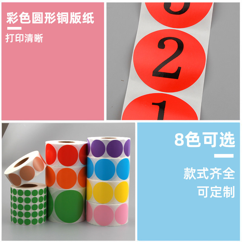 圆形彩色铜版纸不干胶标签纸100 80 70 60 50 40 30条码打印贴纸