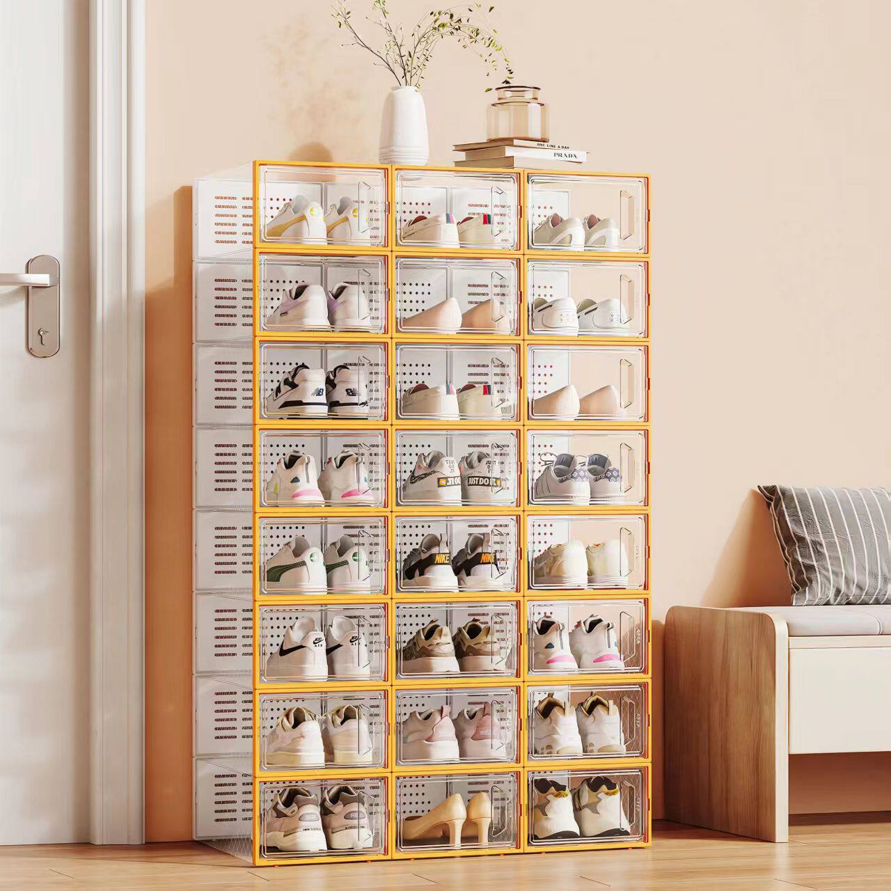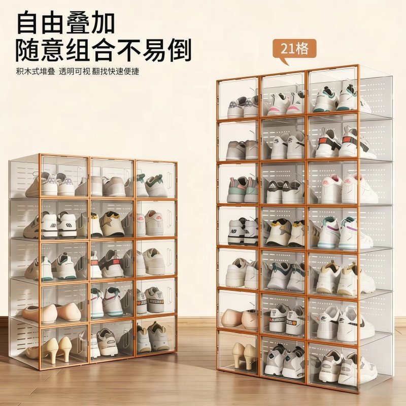 透明鞋盒收纳盒塑料透明鞋柜网红鞋子收纳神器球鞋aj鞋盒鞋架鞋墙