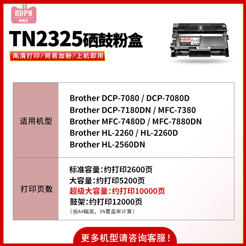 横大牌适用兄弟dcp7080D硒鼓7180DN MFC7380 7480D 7880DN易加粉墨盒HL2260D DR2350晒鼓架粉盒TN2325碳粉