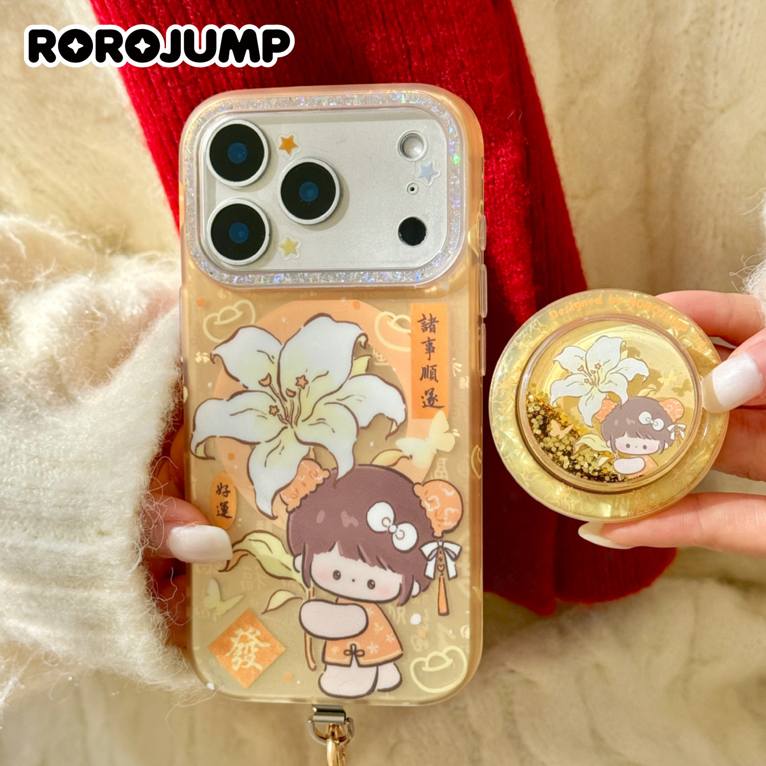肉肉酱花语祈愿适用iPhone17promax磁吸手机壳原创新年款苹果16Pro磨砂imd新中式15耐磨全包14可爱卡通可爱
