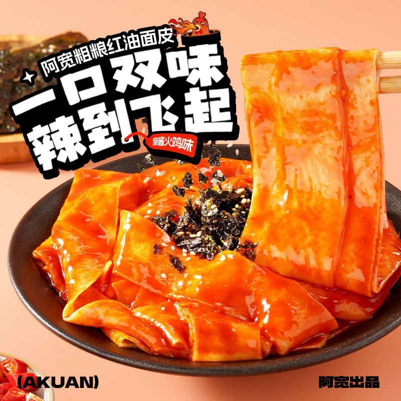 阿宽全麦红油面皮酸辣粉桶装方便面麻酱火鸡泡面速食即食零食小吃