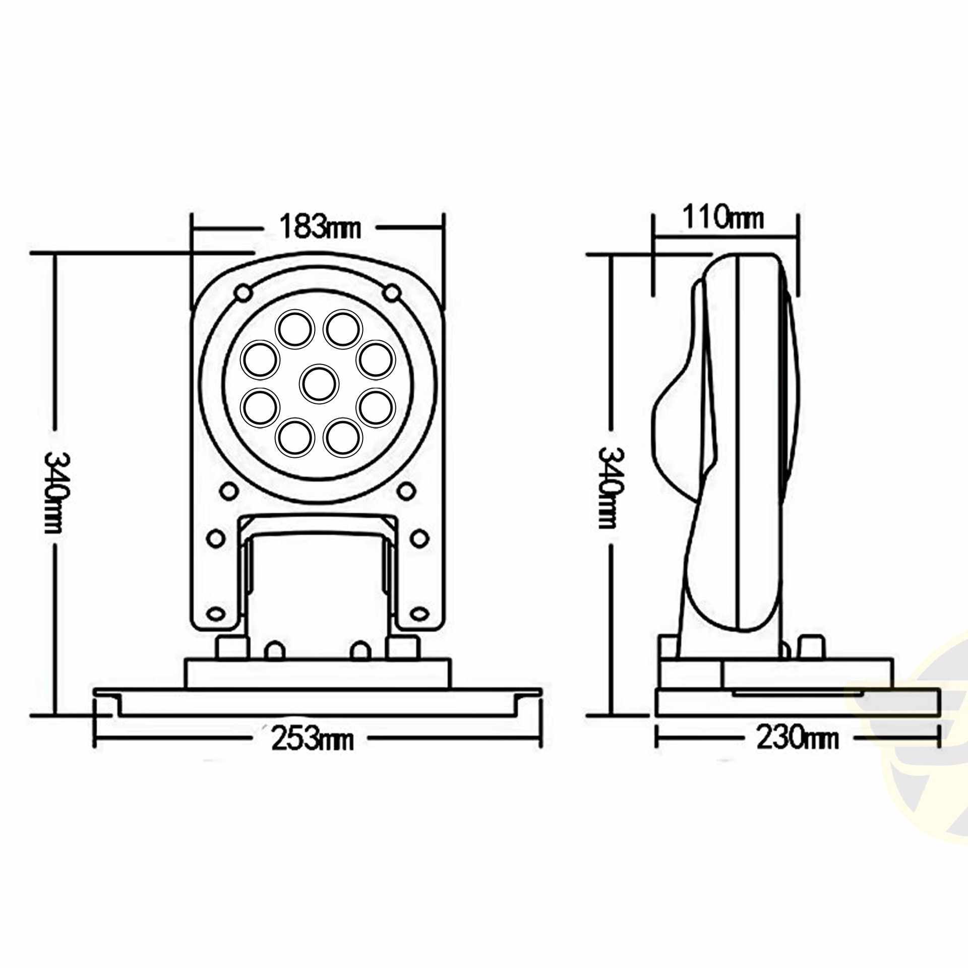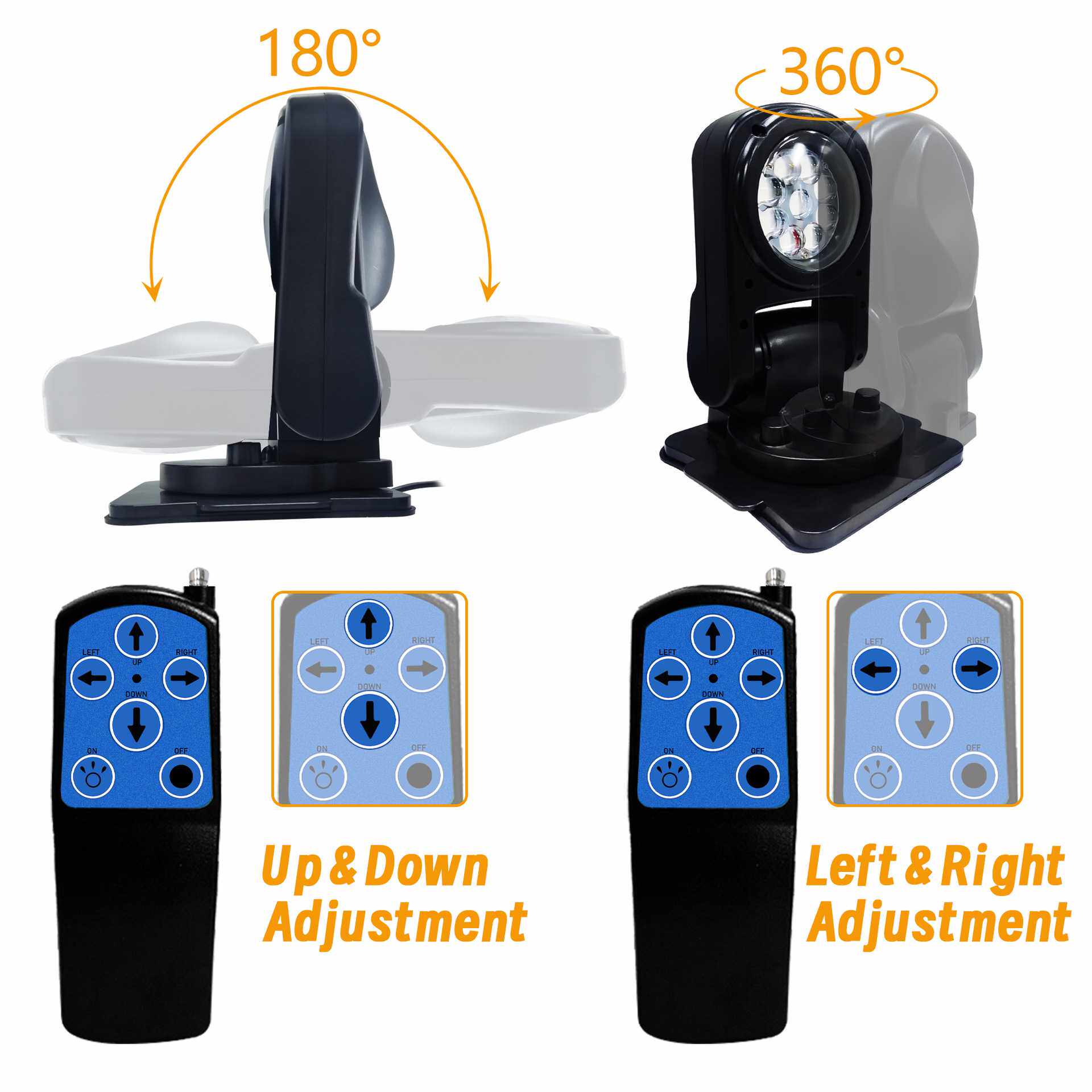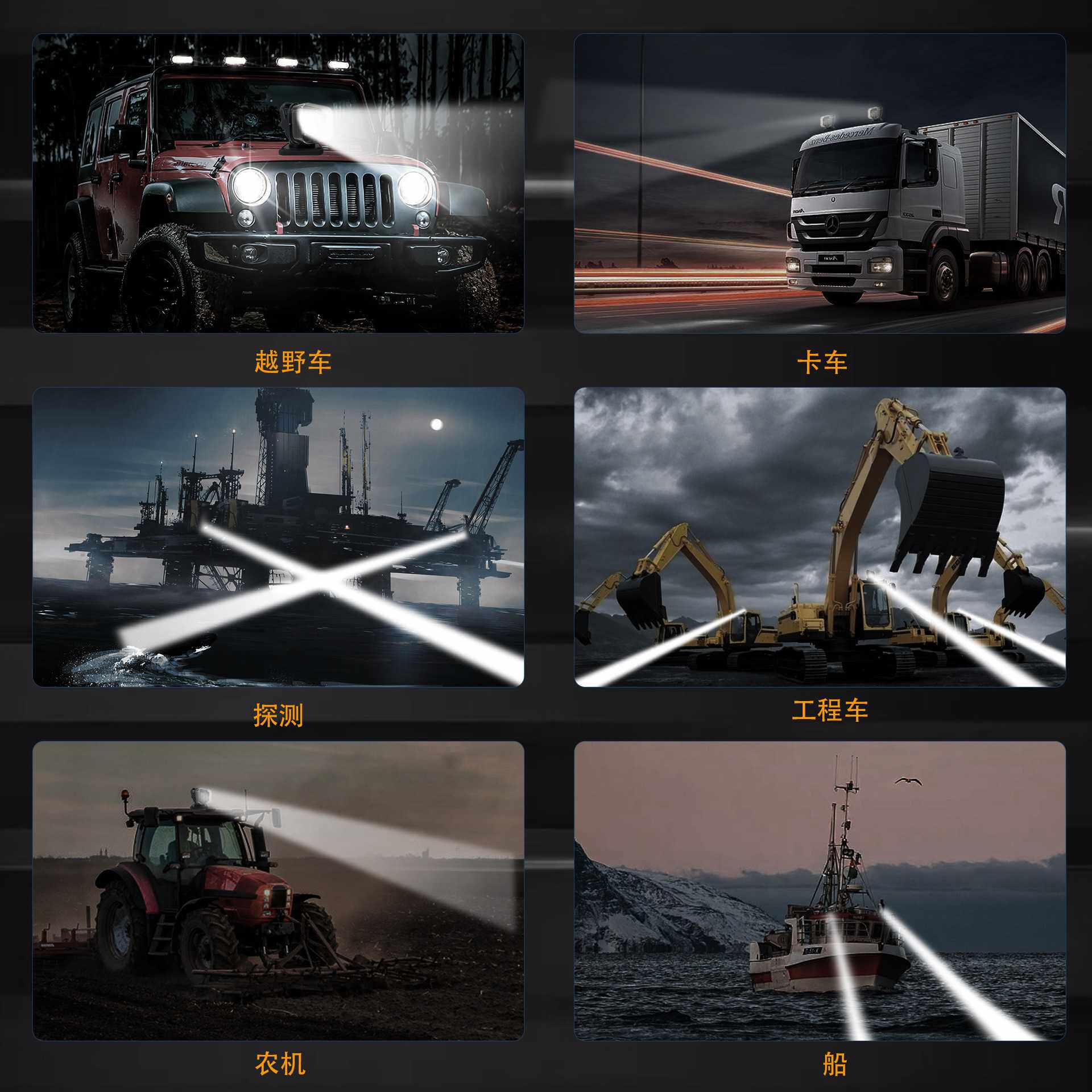 工厂直销车载探照灯高亮360度旋转LED灯12V24V100W无线遥控大灯