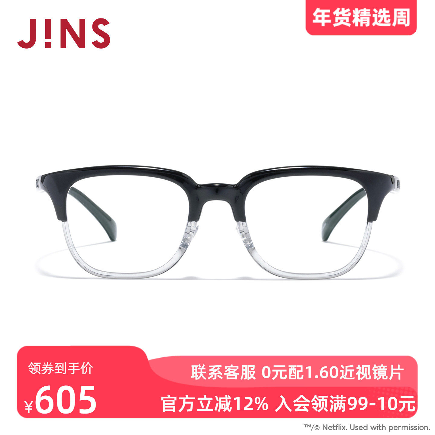 JINS睛姿近视眼镜大方框修颜百搭镜架可加配防蓝光镜片UGF25A267