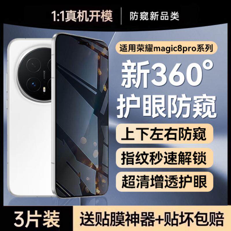 欧炫适用荣耀magic8pro防窥膜magic8钢化膜magic7手机膜magic8proAir新款magic8ultra全屏magic6屏幕保护贴膜