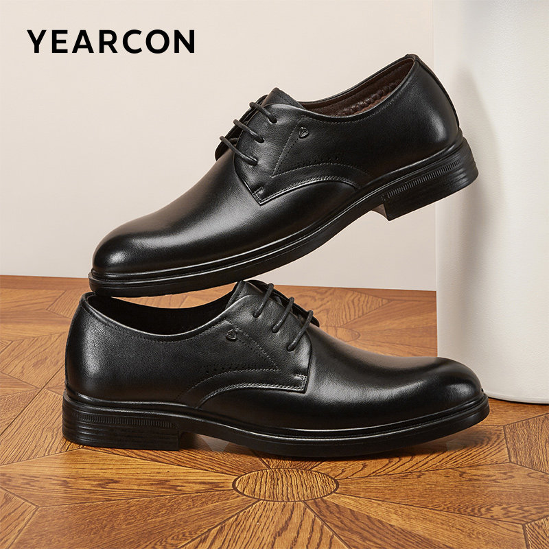 骆驼2025冬季舒适休闲加绒皮鞋男结婚新郎正装商务真皮增高德比鞋