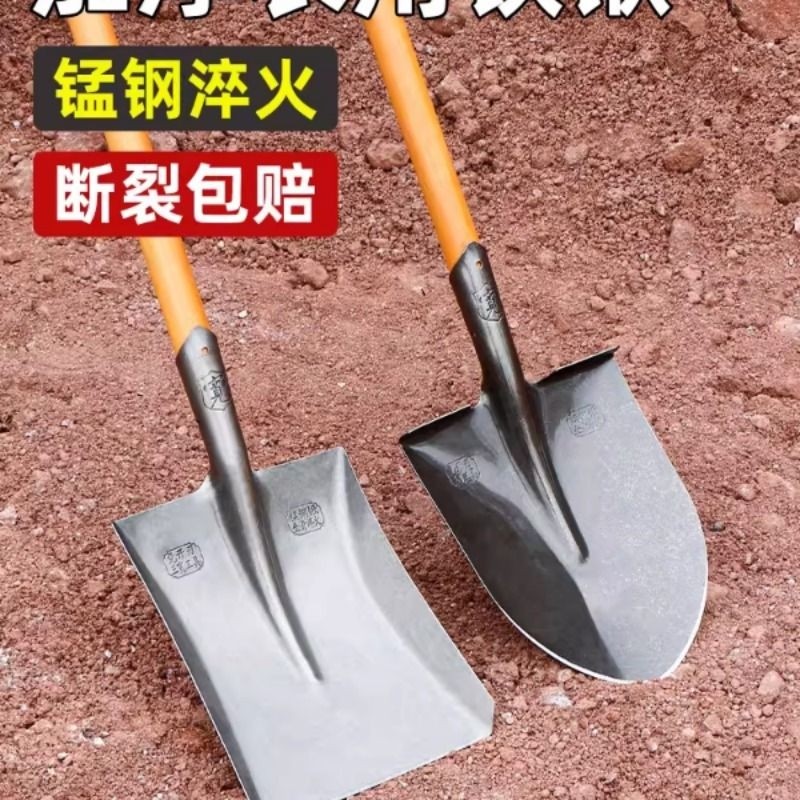 家用铁锹锰钢松土挖土神器方铁锨铲子农用挖土种菜平头钢锹铁锹头